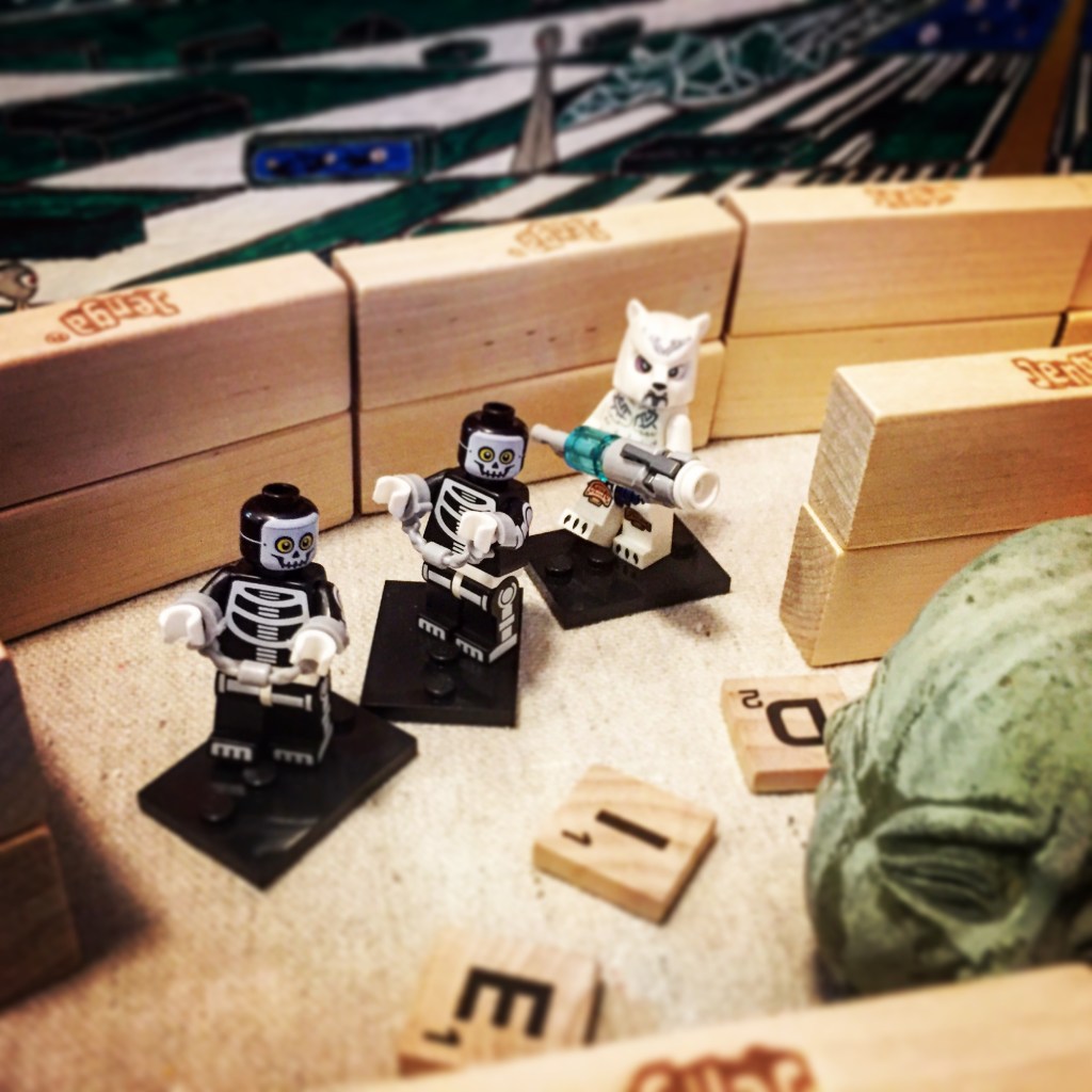 Ignoring the helpful warnings printed on the floor tiles, the zombies of the pirate ship Wastrel plunge deeper into the labyrinth of the Savage Arena, thrusting aloft their weapons amid boisterous cheers of “Aaargh!” and “Ahoy!” Were their brains not rotten, it might occur to them that such clamor is only likely to attract unwelcome attention . . .