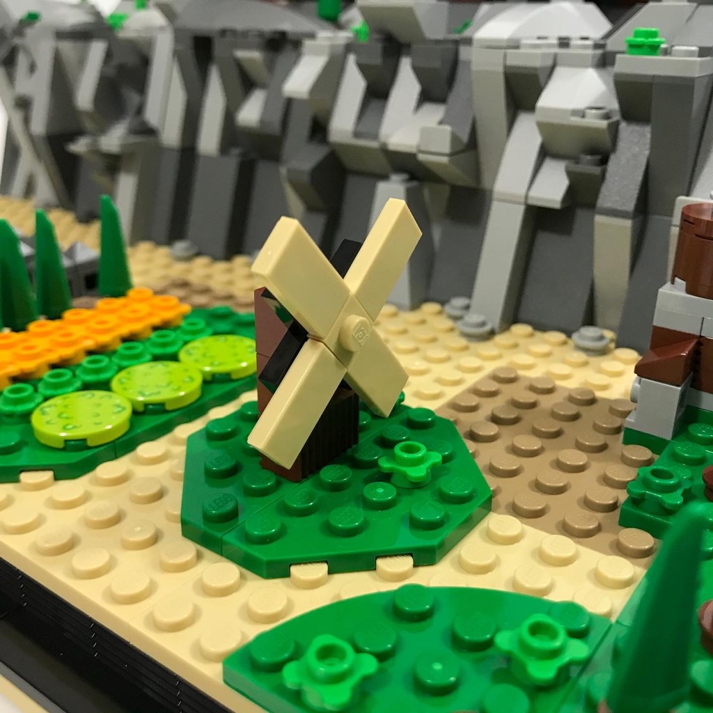 The tumble of water, the creaking of the water wheel, and the restless wind driving the arms of the windmill fill the valley with music.