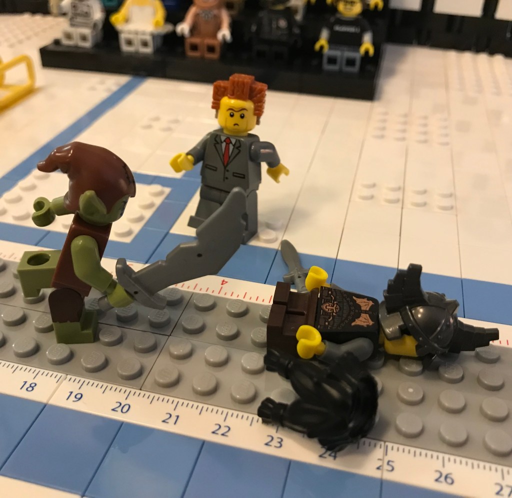 The referee helps up the fallen dwarf – wait a minute, Barbara! That’s no dwarf! That’s the kid from the bleachers, the one with the big foam sword! Uh-oh, here comes his mom and boy does she look unhappy! Referee Antoine Bidness signals the judges – and Clan Clanggenbanggen is disqualified from this bout – victory to Snotgobbet Horde! Let’s take a little commercial break.
