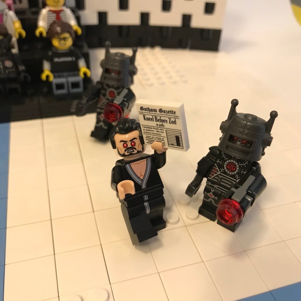 Next up is the BlueShift Fugitive Recovery Agency, a private company of bounty hunters representing Earth’s oppressive, totalitarian, and fascist future – wait a minute, Barbara! There’s a disturbance at the entrance to Salle du Brique, and it looks like someone else is coming out first! Is that – it is! It’s General Zod, Supreme Dictator of the future! What a pleasure to meet the ruthless tyrant to whom our descendants shall someday kneel! He’s flanked by some truly malevolent-looking killer robots with laser guns, so I guess we’d better give him the mic! General Zod, would you like to make some introductory remarks before the fascistic and no-doubt highly corrupt skiptracers who serve you as an extra-legal police force makes their entry?