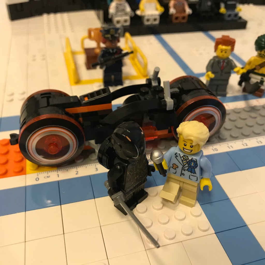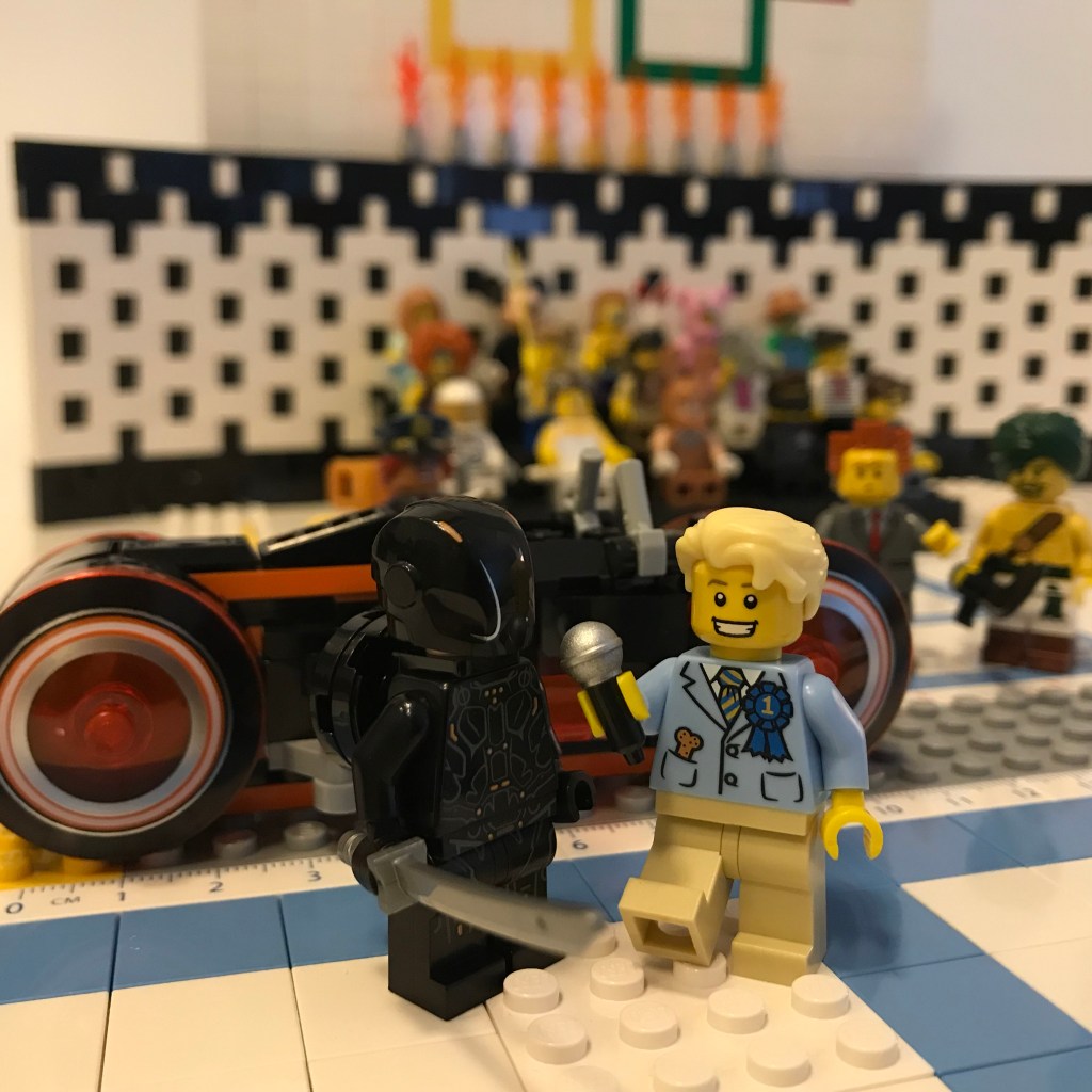 Okay, Barbara, looks like we’re ready to begin the first – wait a minute! Something is driving onto the piste – I can’t believe my eyes, Barbara! It’s a Light Cycle from the TRON System – and the orange can only mean one thing – that’s Rinzler at the controls! Is Rinzler an honorary member of BlueShift? Should be RedShift if you ask me, Barbara, haha!
