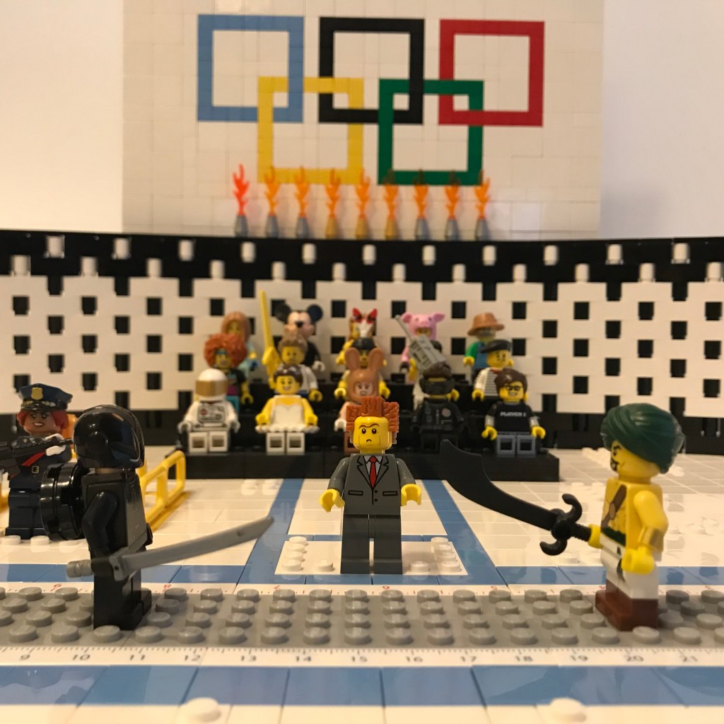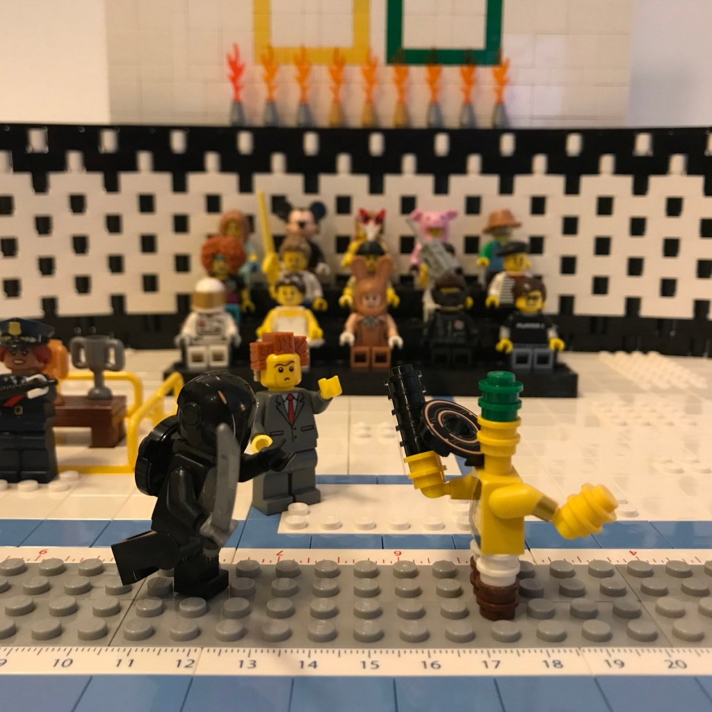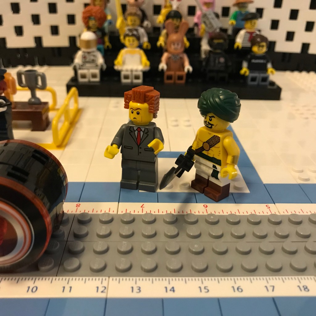 There you have it folks! Rinzler in the flesh – or not, I suppose. It looks like both Referee Bidness and Saladin, first up from the Yestermorrow team, are not very happy about having a Light Cycle at the en garde line. But Rinzler has deferred to the ref and set his Light Cycle aside.