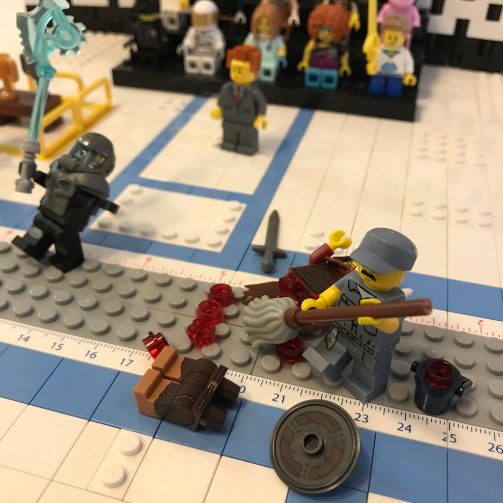 Here comes the janitor with a bucket – I don’t think it’s going to be big enough!