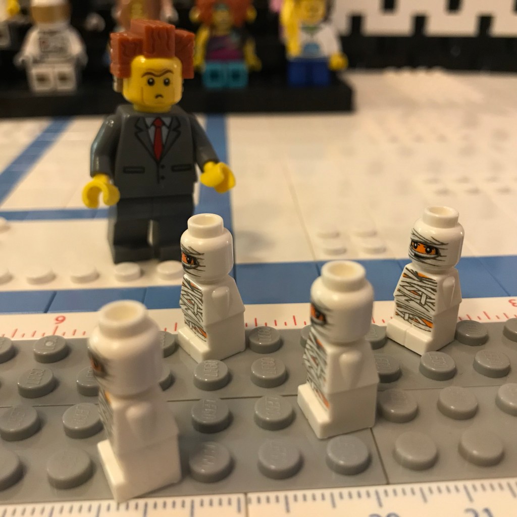 At the cry of “Fence!” Ramesses the Great steps back and bellows a phrase in … well, I suppose that’s what hieroglyphs sound like when you say them aloud! A cloud of dust appears and from the cloud … are those mini-mummies? Those are adorable!
