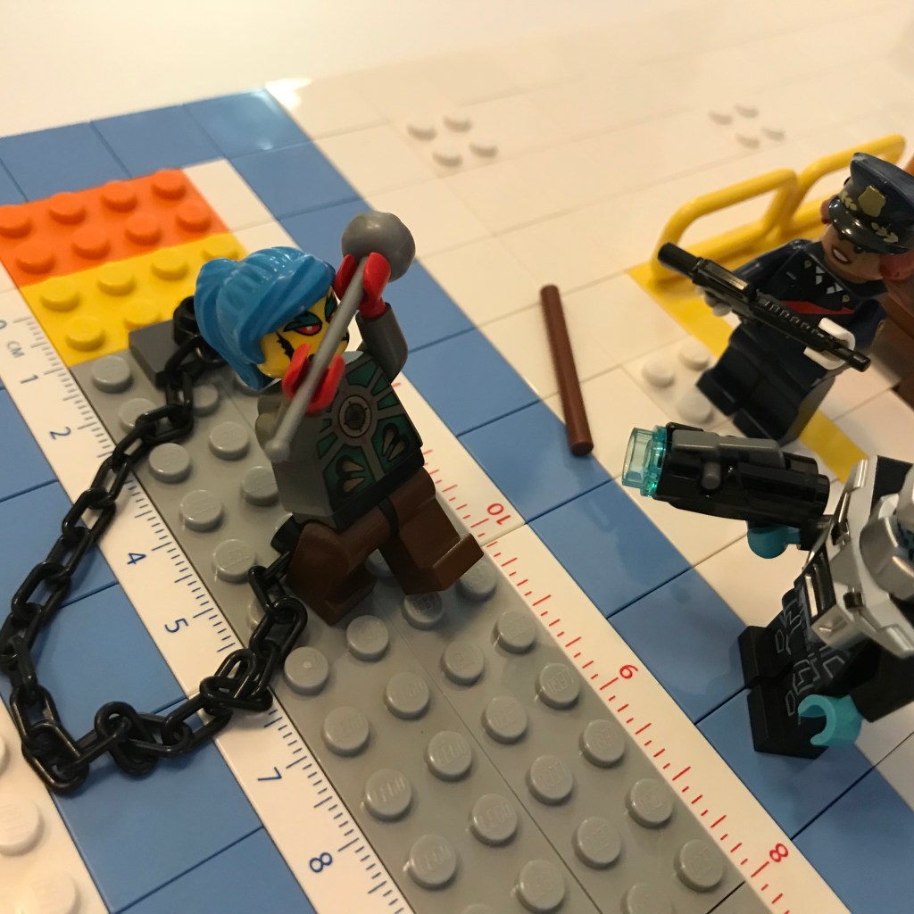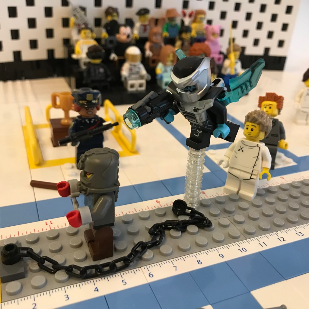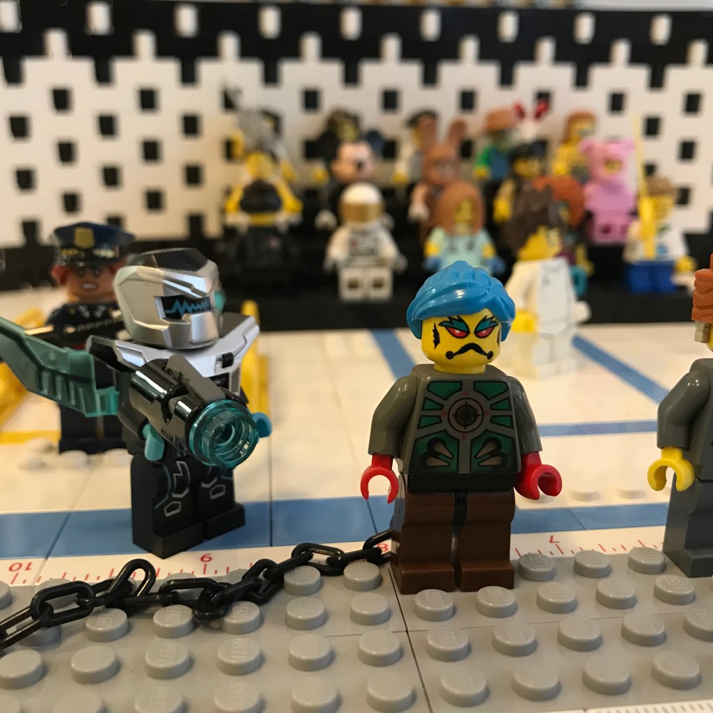 Representing Greeble-23 is Stingray, a not very friendly looking character. For Hic et Nunc, it’s famed Olympian Soren Thompson. It looks like Stingray is chained to the piste, but at least they’ve given her some slack.