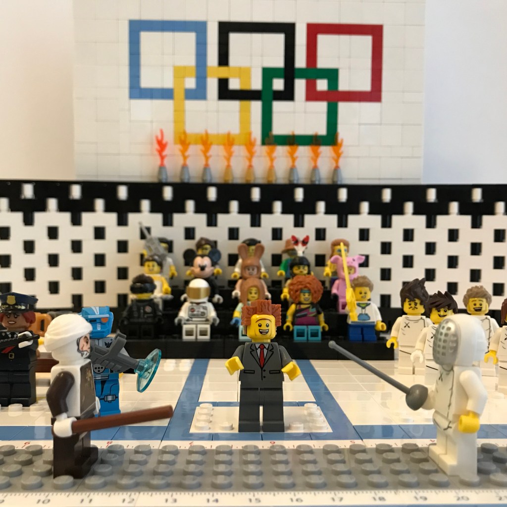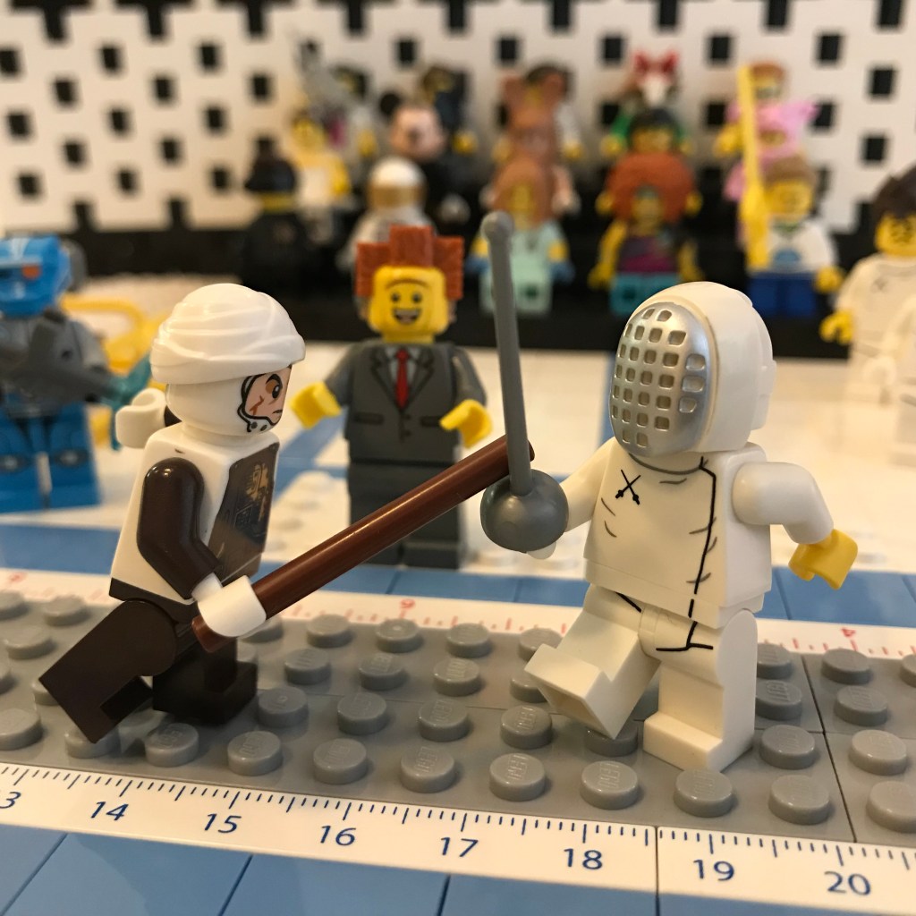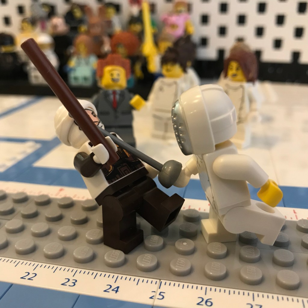 Referee Bidness calls “Fence!” and Dengar is off the line with a cut to Shemyakina’s glove, which the Ukrainian fencer just barely parries! A strong start!