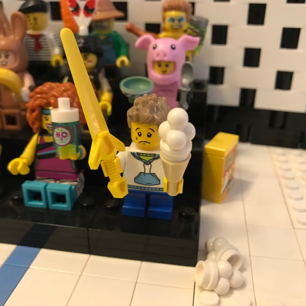Okay, we’re about to – wait a minute. There’s a commotion in the audience; it looks like a young man has dropped his triple-decker ice cream. This is the young fellow who pretended to be Hornyhat Clanggenbanggen during Elimination Round 3 yesterday.