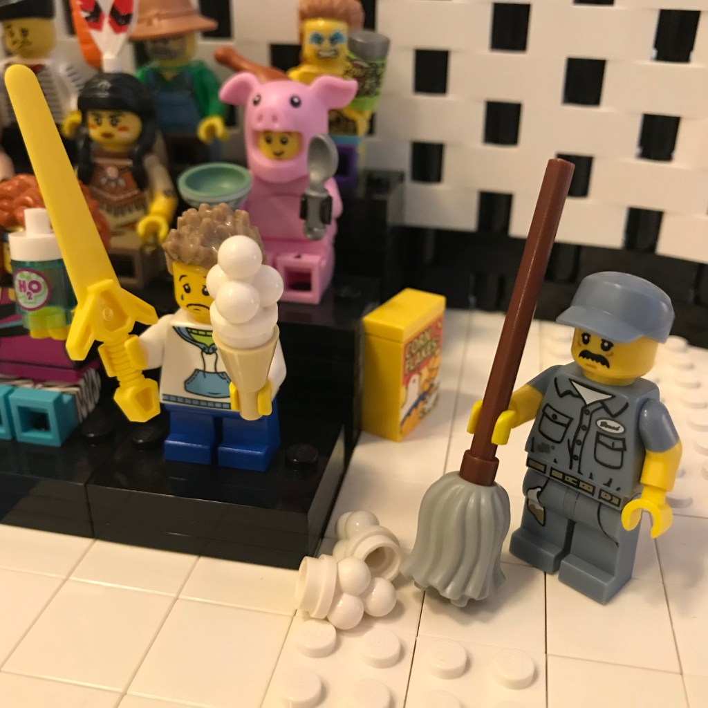 Here comes the janitor comes to clean it up.