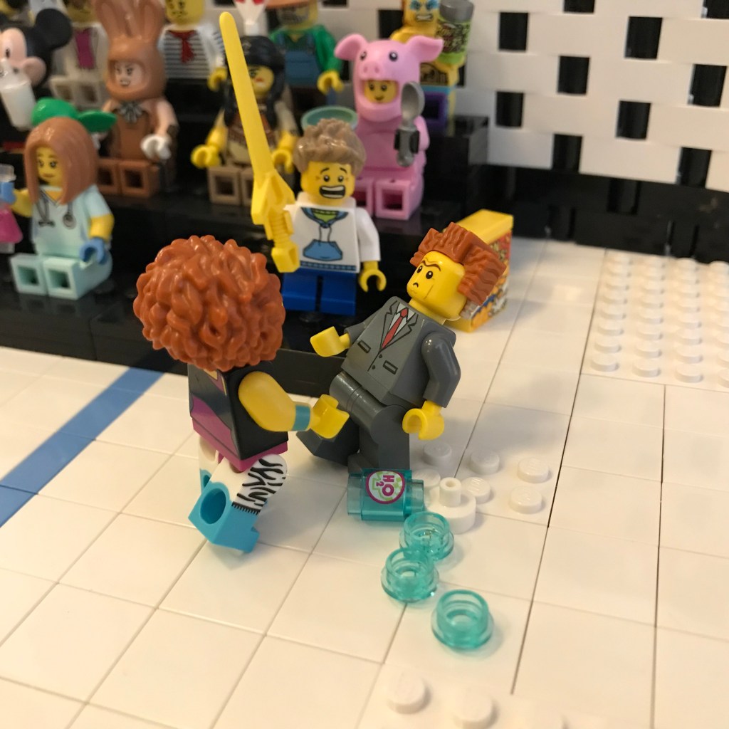 Barbara, you won’t believe this, she’s challenged Referee Bidness to a fencing bout! They’re off to change into gear right now. I’m not sure this is a good idea – Bidness is an expert with all three weapons.