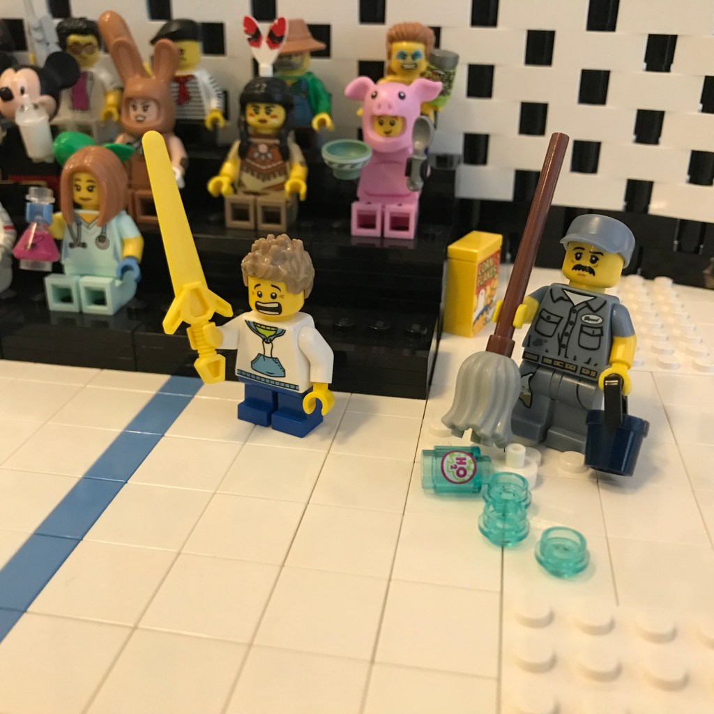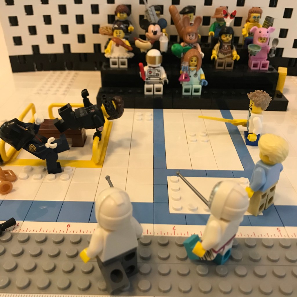 Okay, we’re back now, and I think my stomach has settled. I’ve heard from the judges that they’re throwing out Bout #2. That’s two attempts at having some actual fencing today, with no results.