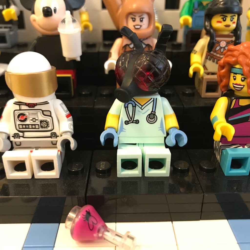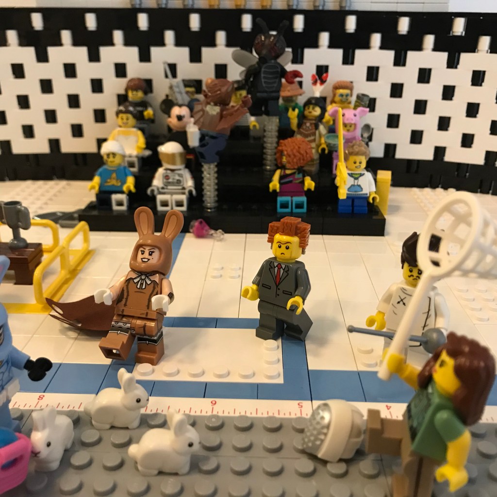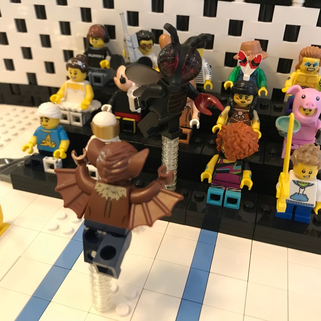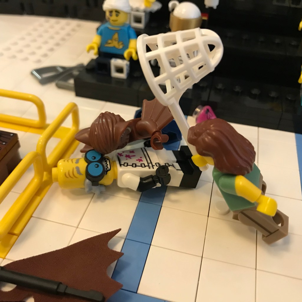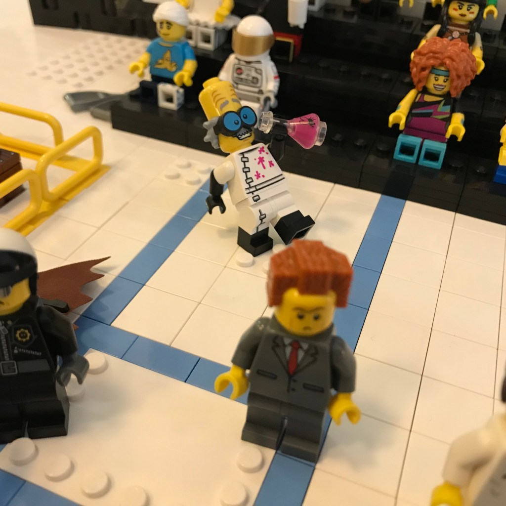 Wait, there’s also a disturbance in the audience! The woman who’s been drinking out of an Erlenmeyer flask has transformed into some kind of Woman-Fly!