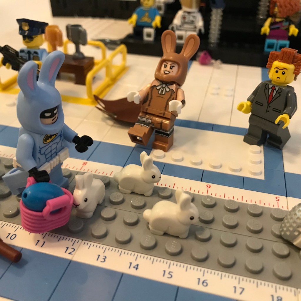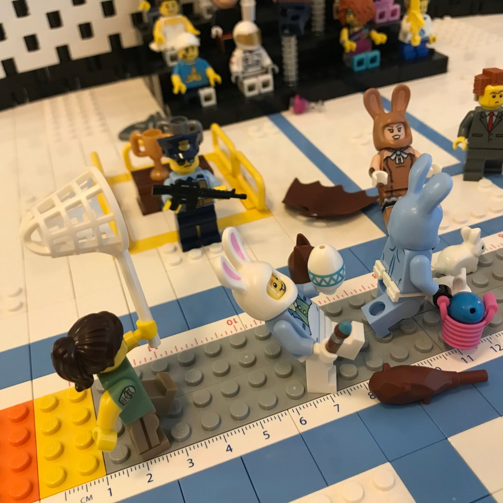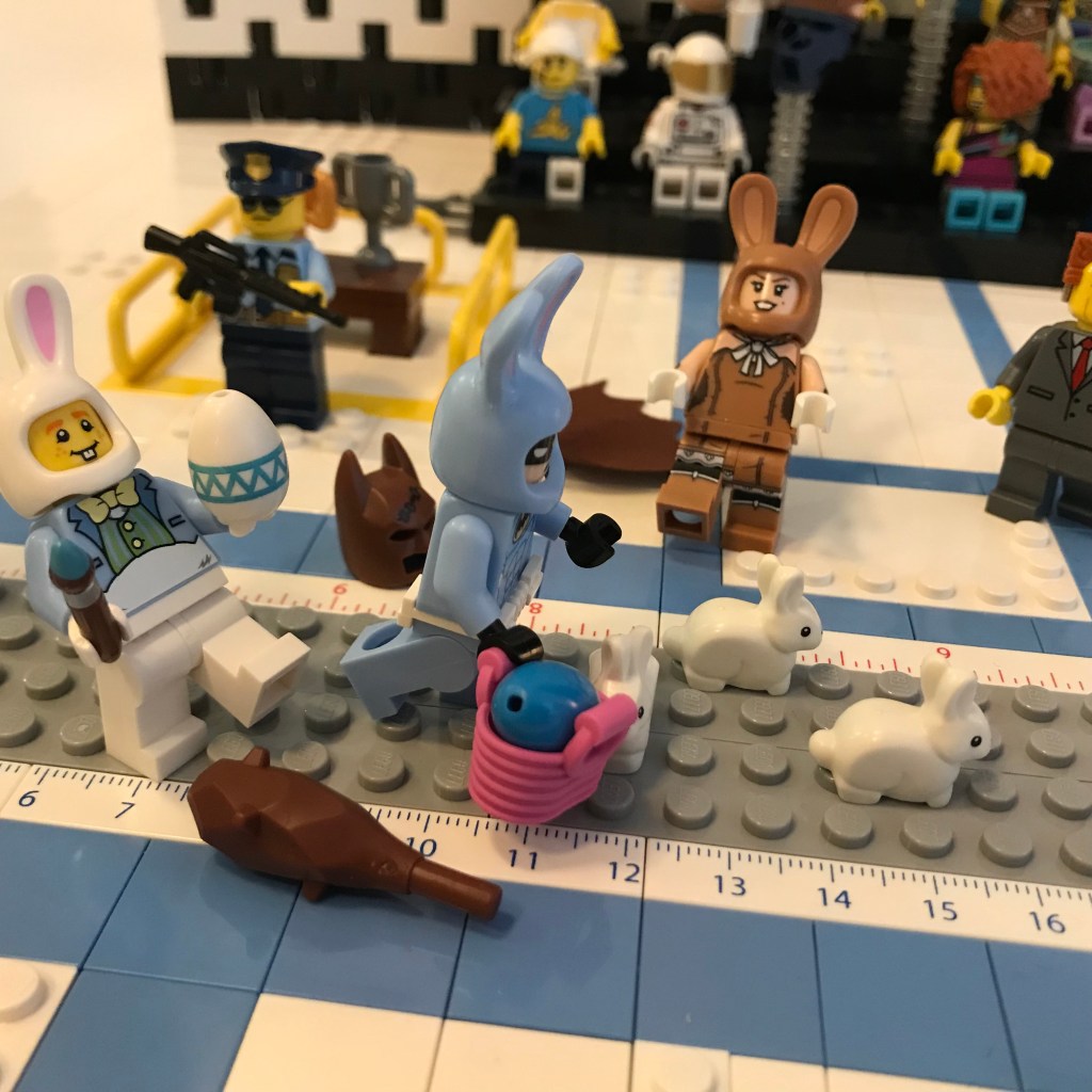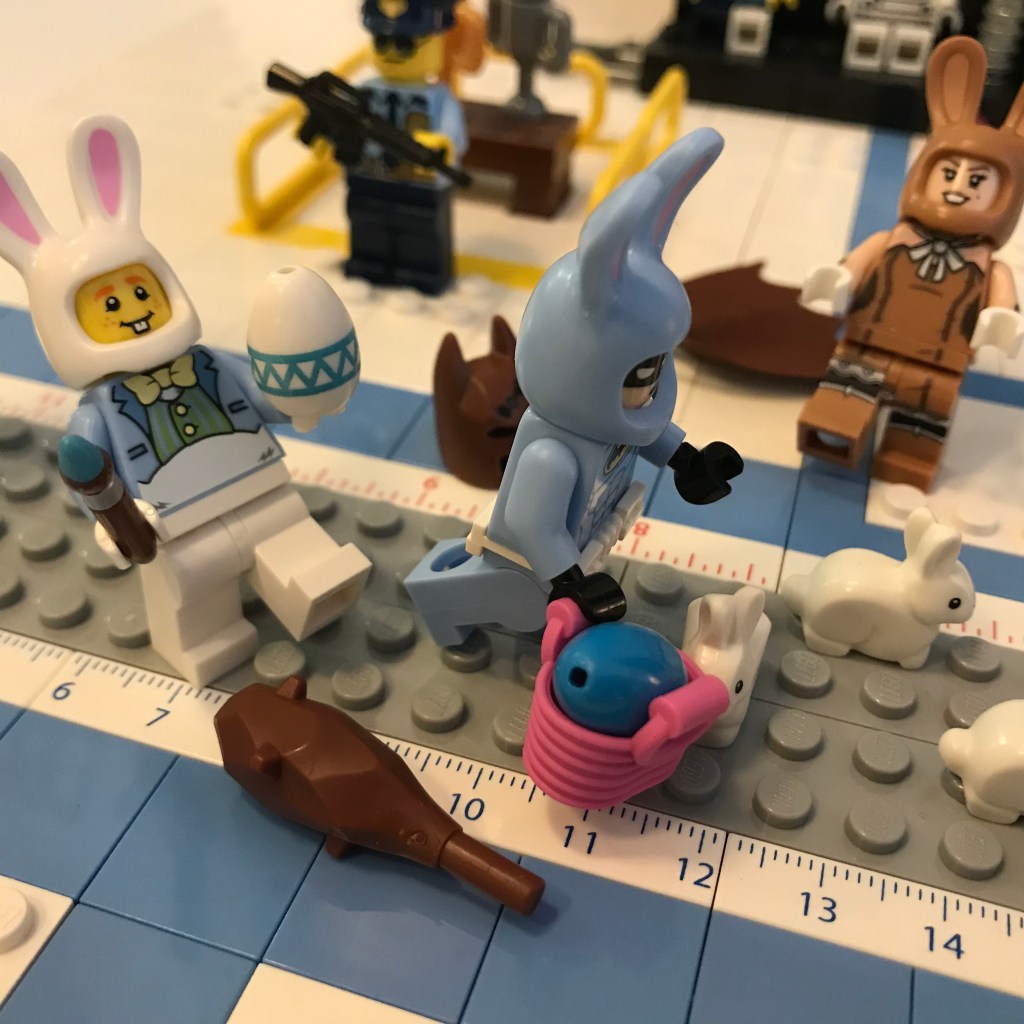 Wait, there’s another disturbance from the piste! Here comes Bunny-Man leading a pack of other Bunny-Men – call him Echo, I guess? – and bunnies! They have Easter eggs! I’m so confused, Barbara – it’s November!
