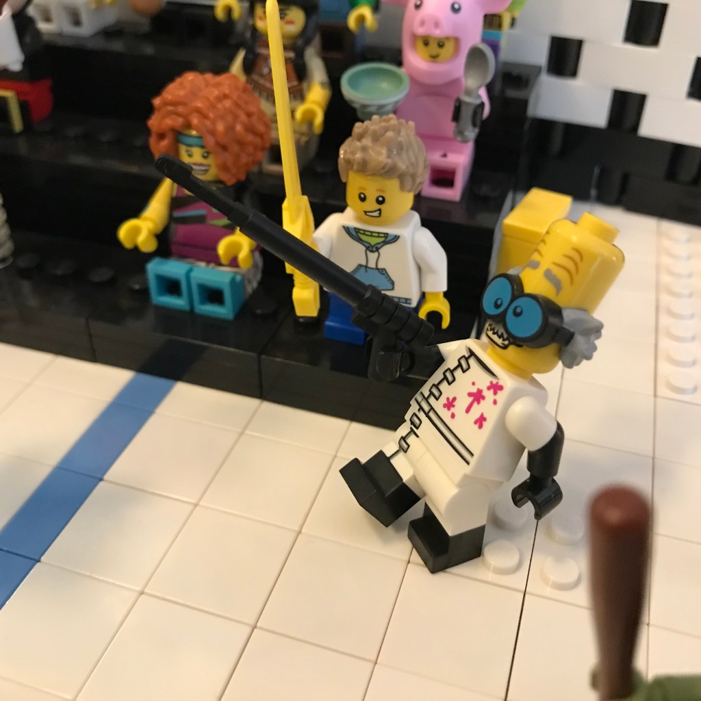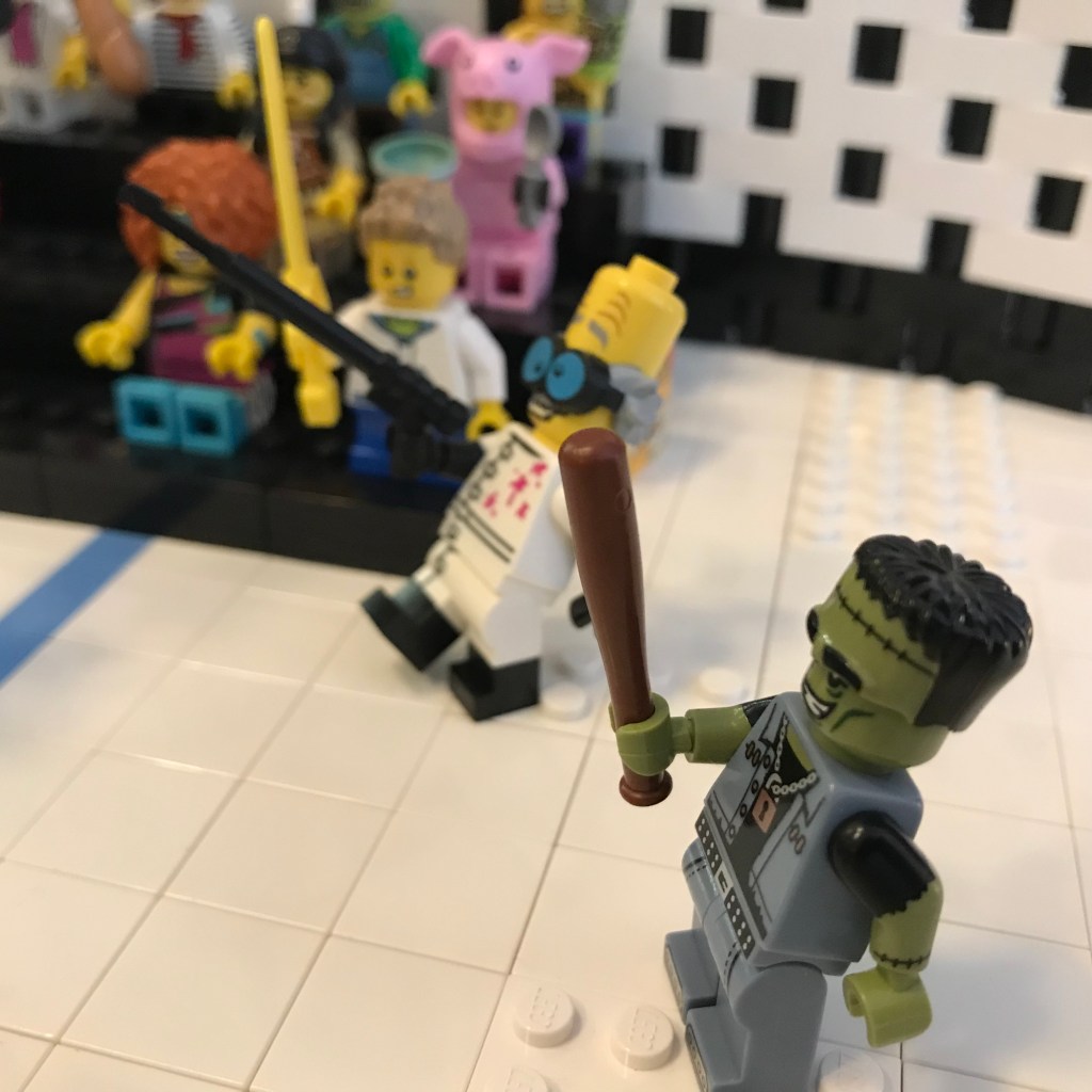 And who is this just emerging into the hall? It’s the famous mad scientist Professor Geryon and his laboratory assistant wielding a harpoon and a baseball bat! They look like they mean business!