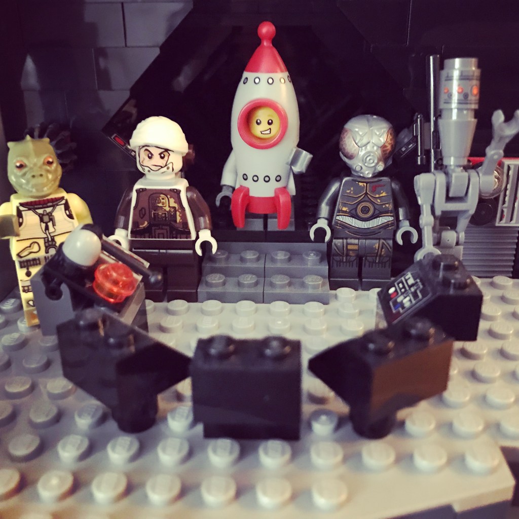 Next, they stopped briefly at the detention block. Mrs. Rocket wasn’t too thrilled about lingering here because the place was full of disreputable-looking bounty hunters. Little Robbie insisted on getting a picture with them anyway.