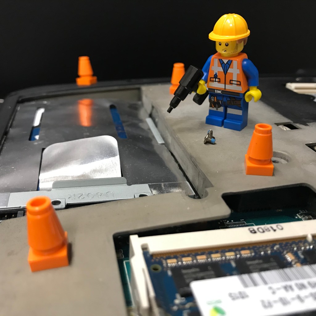Last night I dreamed I was Evan the Overwhelmed Network Guy. I was repairing a laptop, and I may have lost a screw …. Also, was this part supposed to come out? It was awfully hard to get out and now I think there’s a good reason. I think now I understand why they use robots to build these things. This sucks.