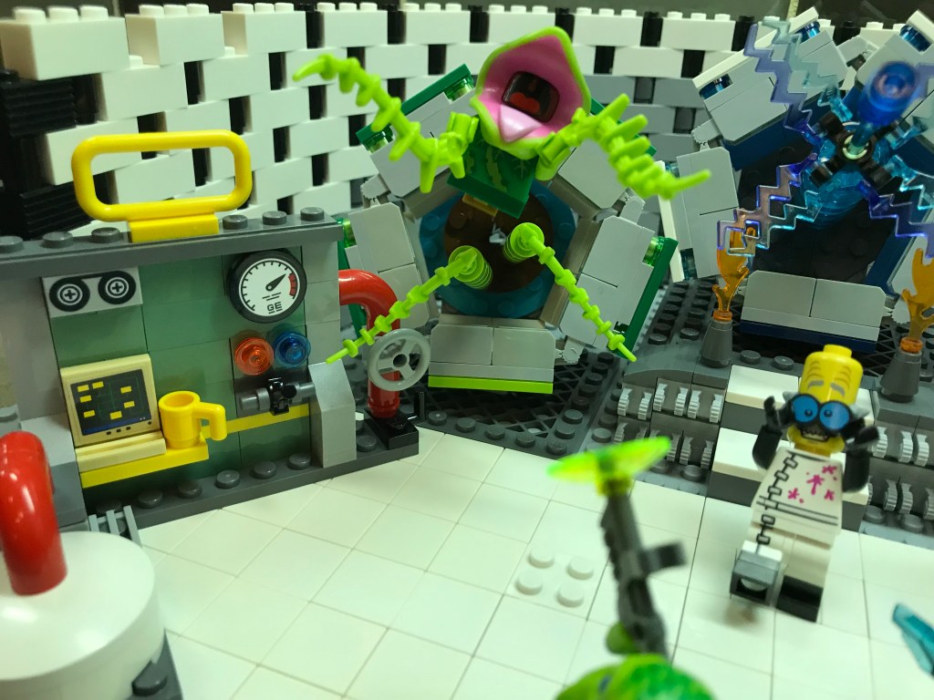 Massive, flexible, thorny vines with flesh-eating flowers have erupted from Portal #1. The laboratory is redolent with the fragrances of vegetation, rotting meat, and intoxicating perfume.