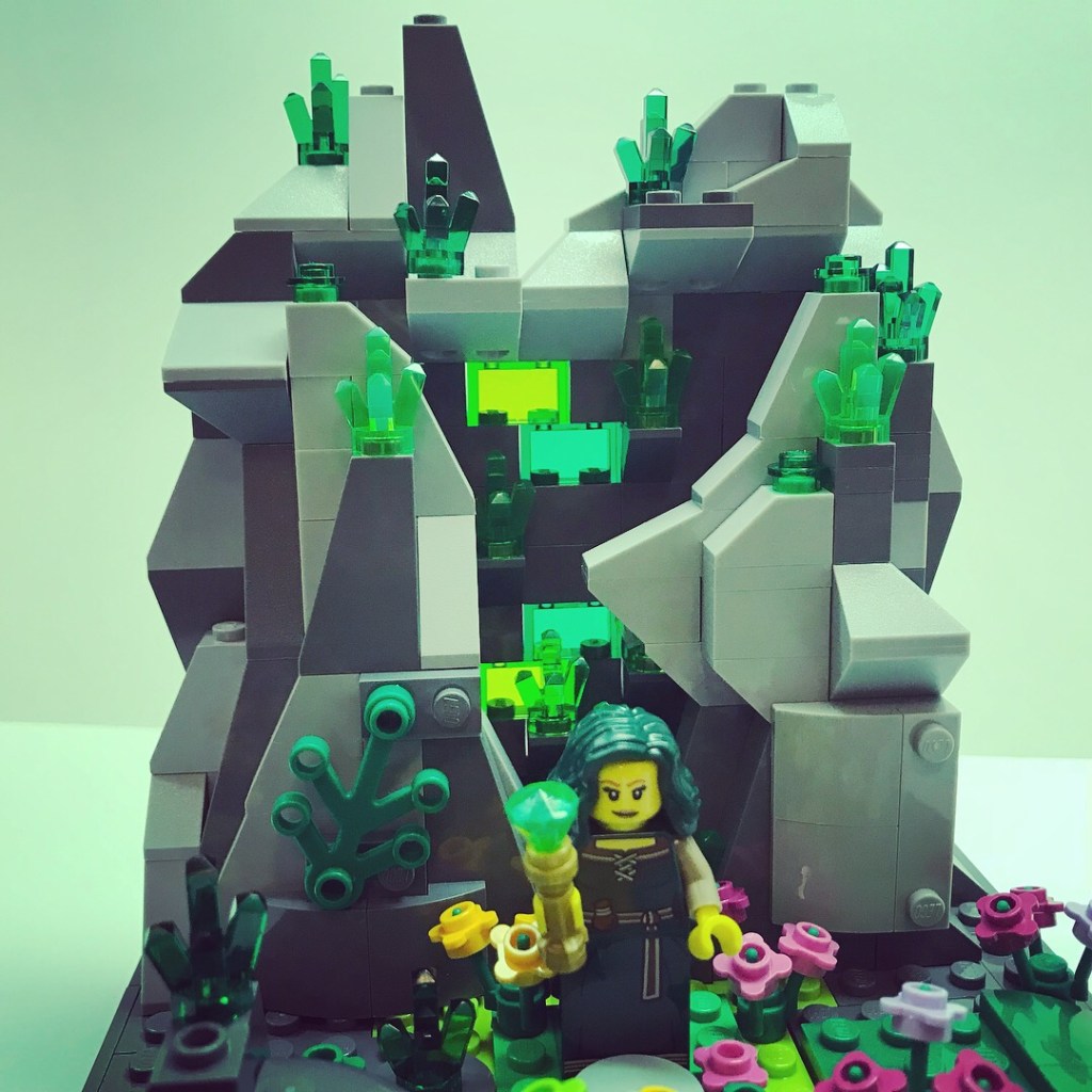 Here’s the fourth installment in my Elemental Wizards series. This is the Green Wizard in her forest bower outside the city of Uducor, which readers of my novel A Lord of Three may recognize. Scroll down to see more! I removed the trees in the last pic so you can better see the crystal cave behind her.