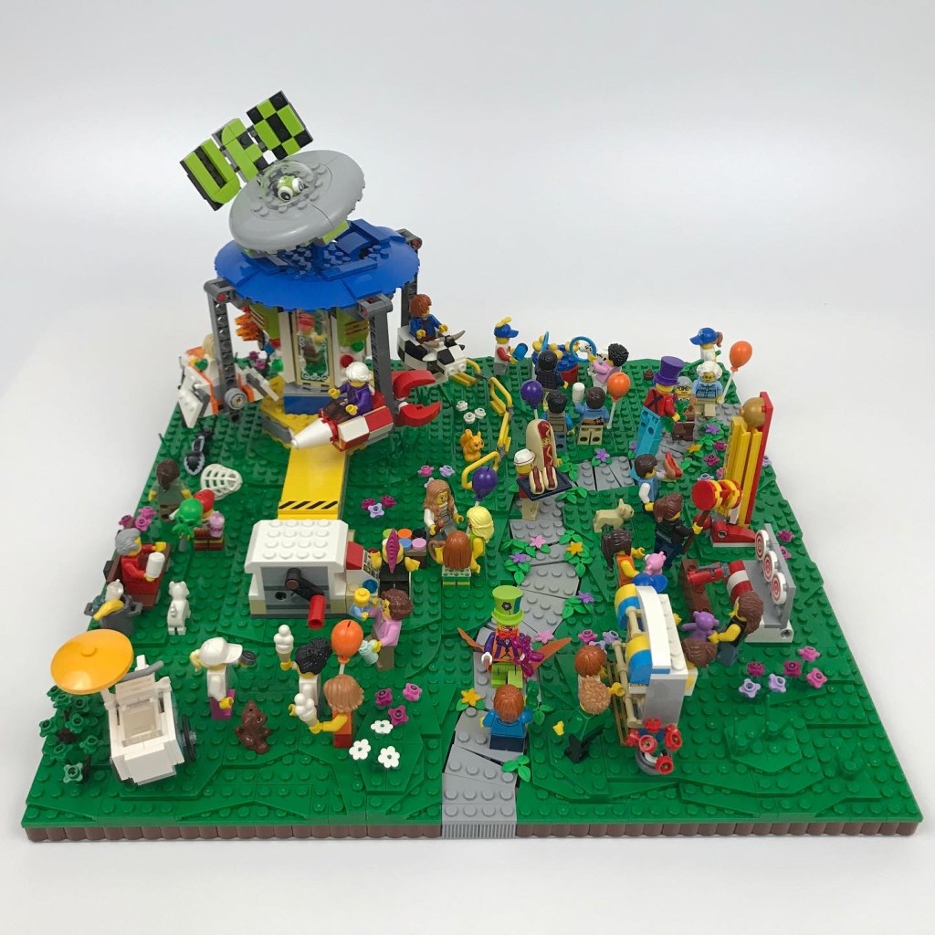 This MOC includes official sets 31095 (Fairground Carousel) and 60234 (People Pack – Fun Fair), with some additions of my own.