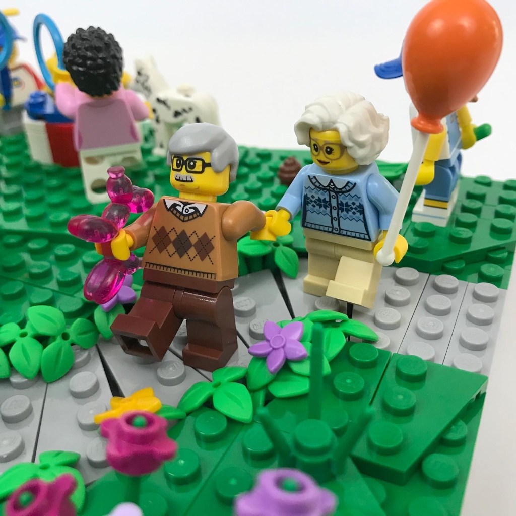 Henry and Barbara buy balloons from a stiltwalking clown.