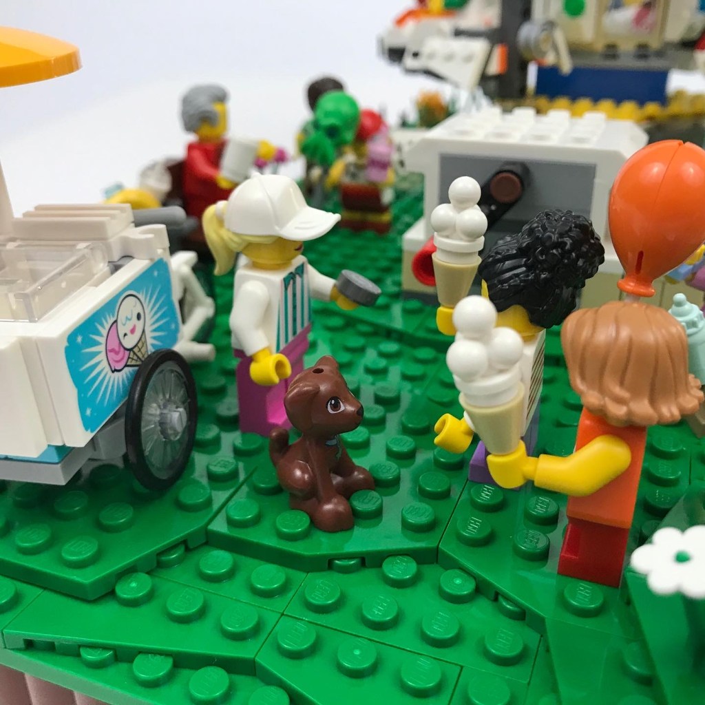 Meg keeps the baby entertained while her daughter Grace and Grace’s friend Akylie buy ice cream. Grace’s puppy has high hopes about that ice cream …