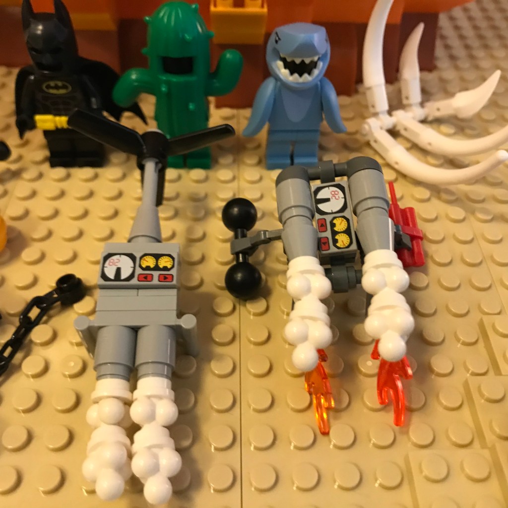 … Personal Helicopter, Rocket-Powered Backpack (with optional Robot Arms), Bat-Suit, Cactus Suit, and Shark Suit!