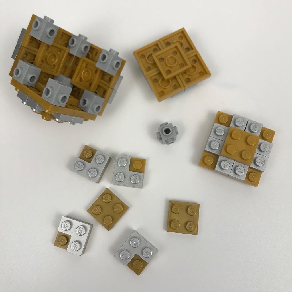 Some BTS pics of the Grimtooth build. The gold and silver ball is a Lowell sphere, slightly modified since Lego doesn’t make all the parts I need in these colors (also why the ball is gold and silver instead of solid gold).