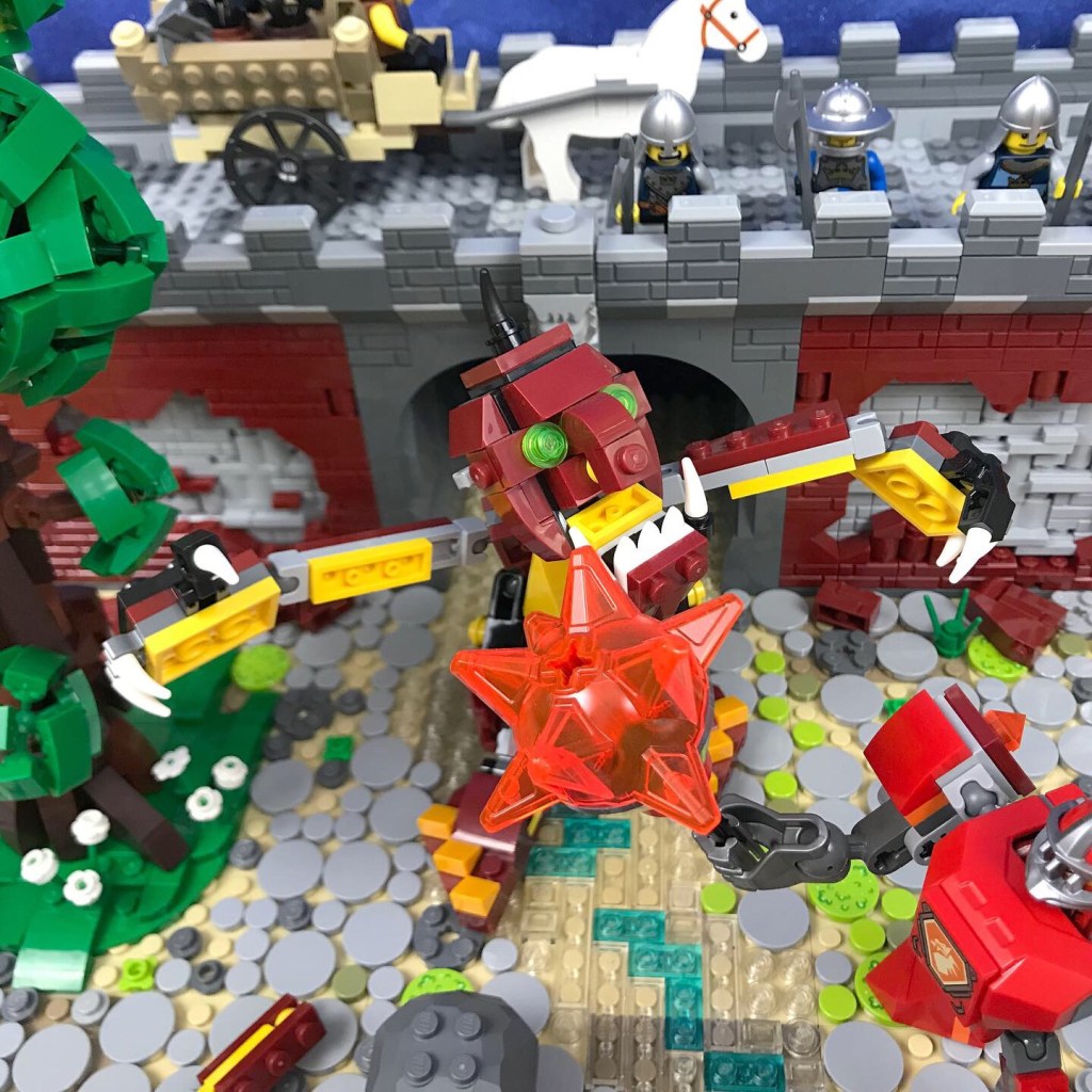 This scene features one of the three alternate builds of Set 31073 (Mythical Creatures) and Set 70363 (Battle Suit Macy). I built that fabulous tree with instructions by the very talented @fullplatebuilds. The bridge is my own creation.