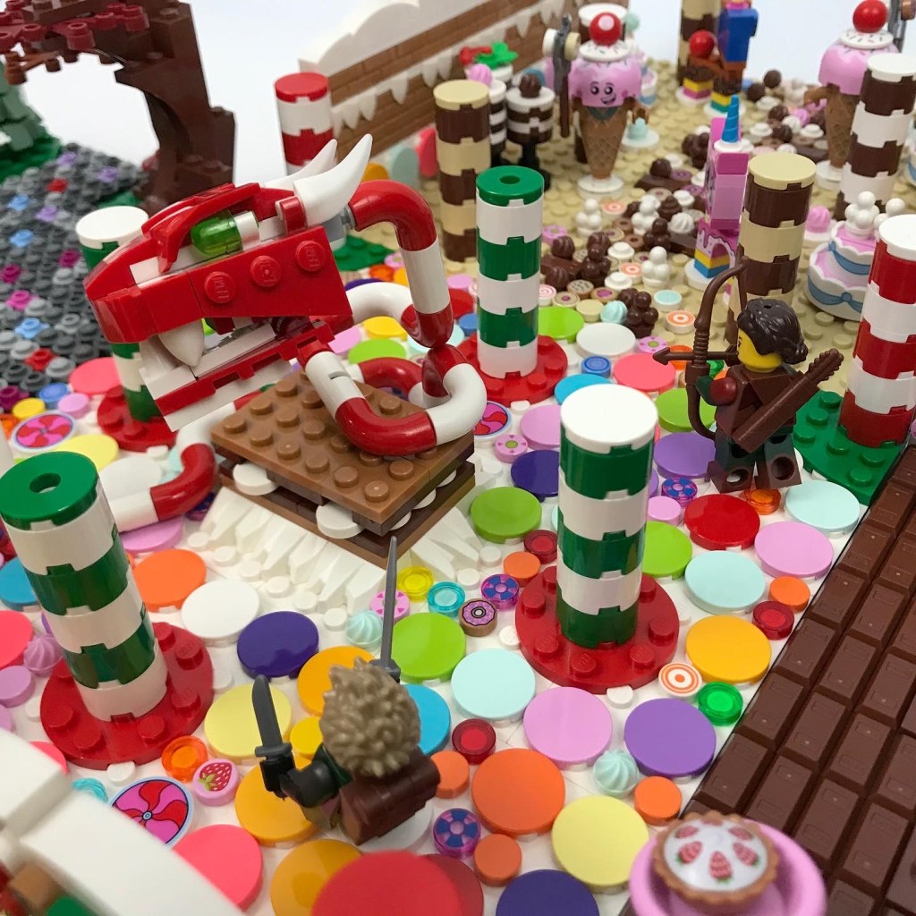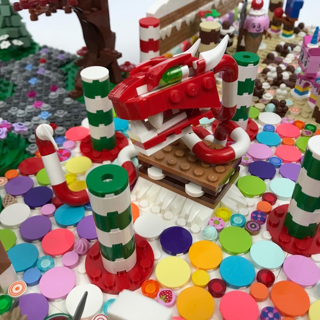 Coiled atop a giant S’more is a candy cane dragon! The monster lashes his spiked tail at the heroes and opens his fanged jaws wide to swallow them whole!