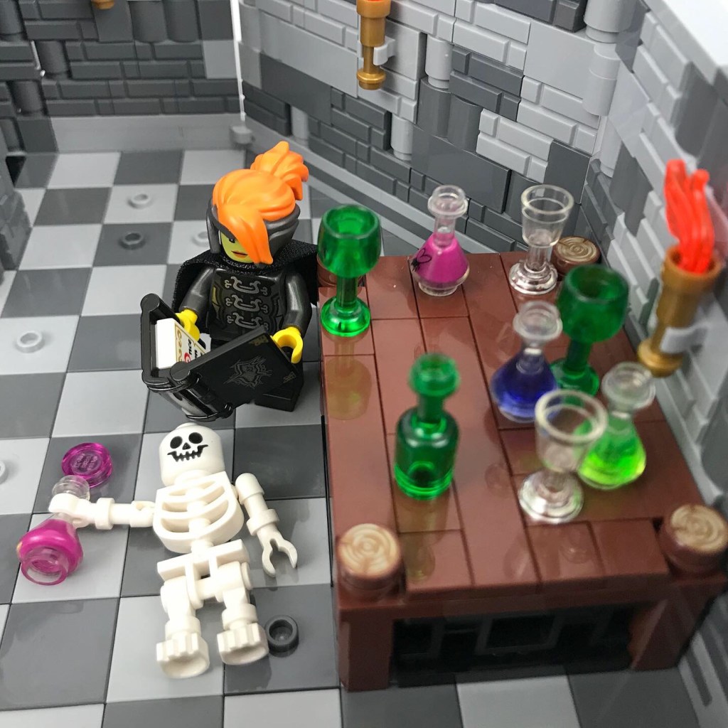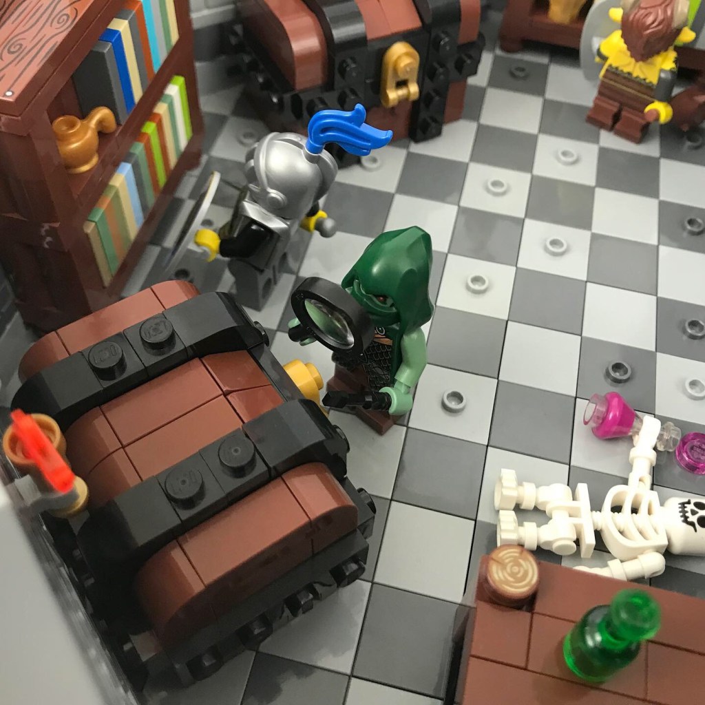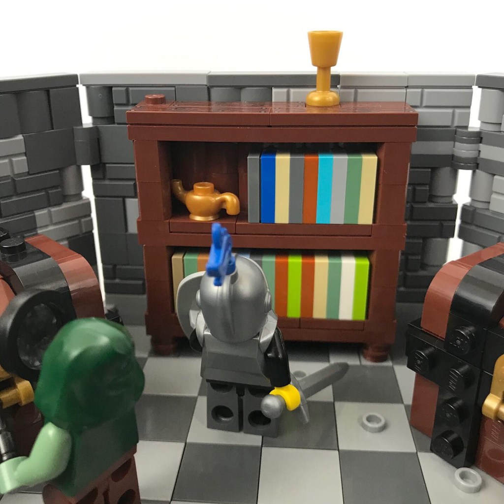 Meanwhile Ingrid and Taddeo examine the golden treasures on the bookshelves and Misako pores through the wizard’s spellbook.