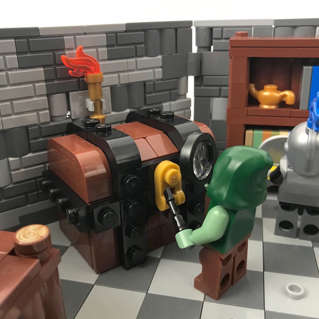 However, even after much frustrating effort, he cannot defeat the lock. “Must be magical,” he mutters, and turns his attention to the second lock.