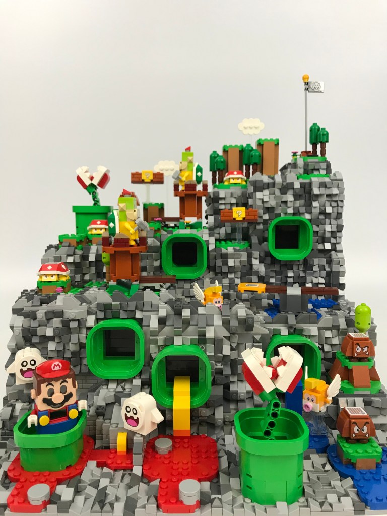 Hammer Mountain: my latest Super Mario Brothers creation. This scene includes most of the parts from 2 copies of set 71360 – Adventures with Mario Starter Course. The rest is my own creation.