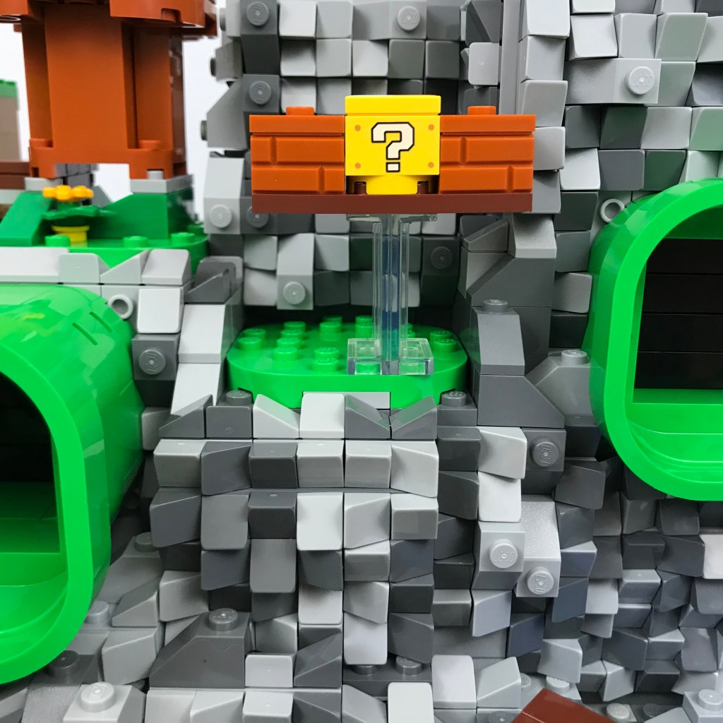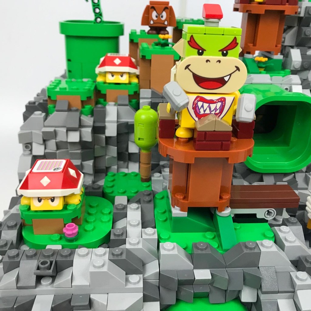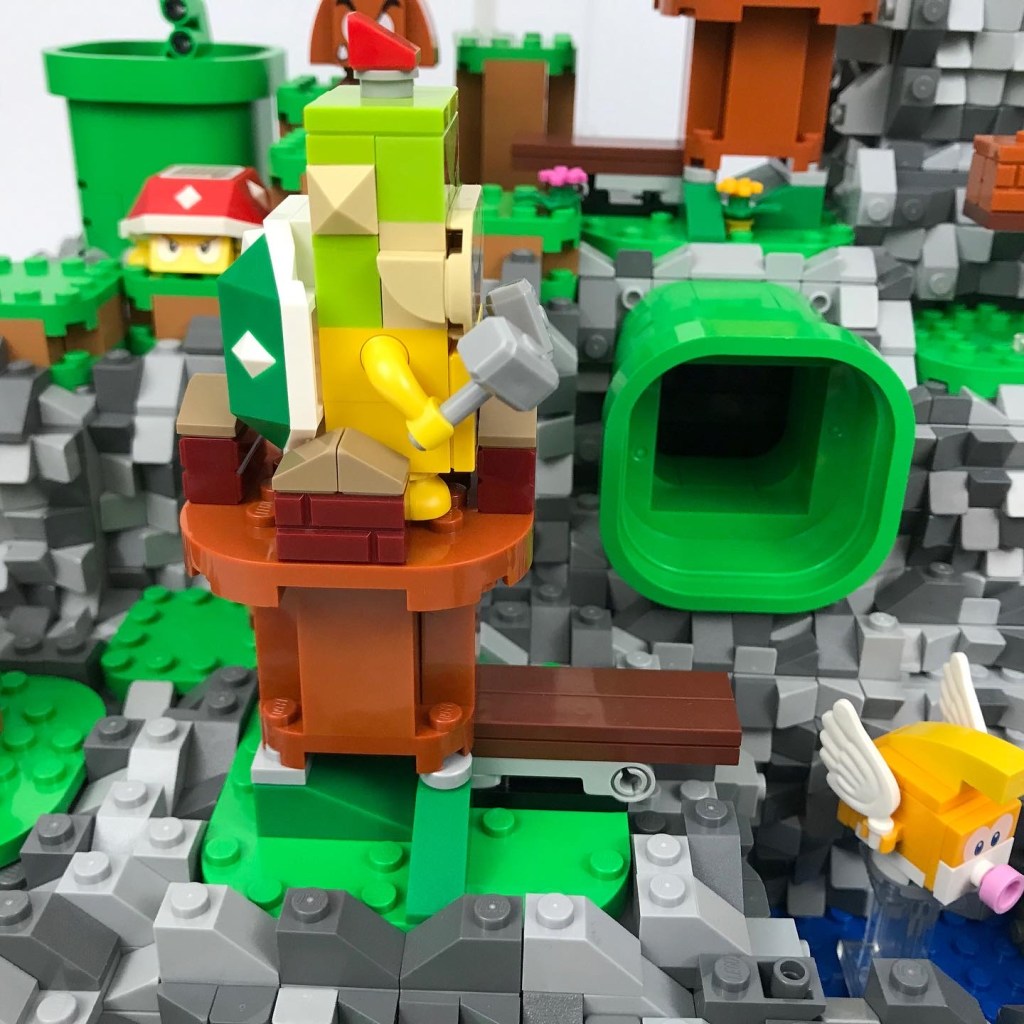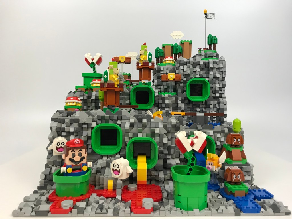 Hammer Mountain: my latest Super Mario Brothers creation. This scene includes most of the parts from 2 copies of set 71360 – Adventures with Mario Starter Course. The rest is my own creation.