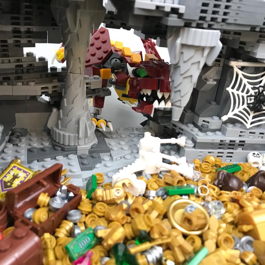 A movement at the back of the cavern catches his eye. A red reptilian head emerges from an adjoining chamber. The dragon is here!