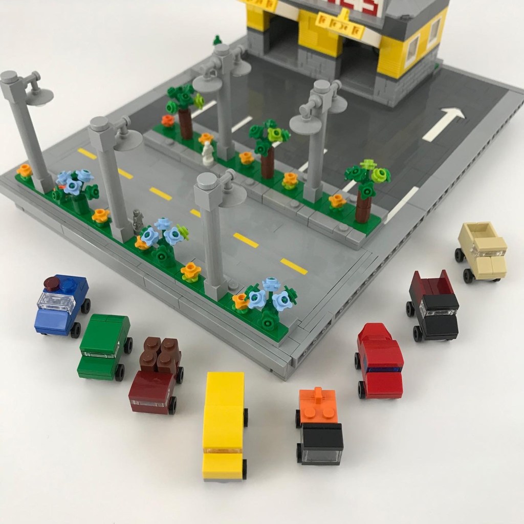This is my Lego tribute to the Micro Machines Travel City sets. Scroll down for tires and tiny cars!