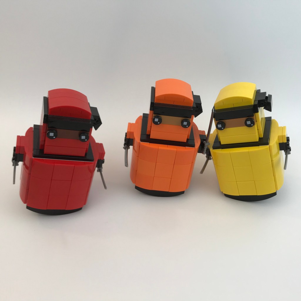Here’s the newest variation on my rainbow ninja Brickheadz. These guys have big round butts and magnets in their bellies to make them move. I had high hopes for the magnets, but turns out they mostly just bonk into each other and fall over.