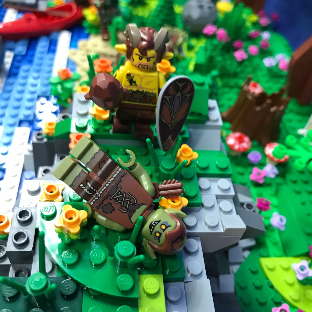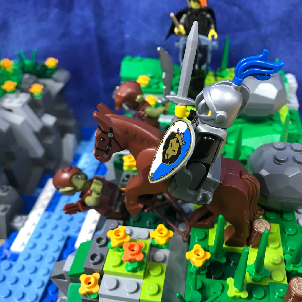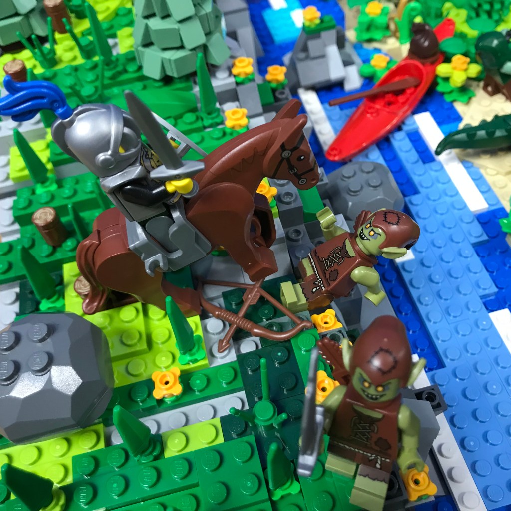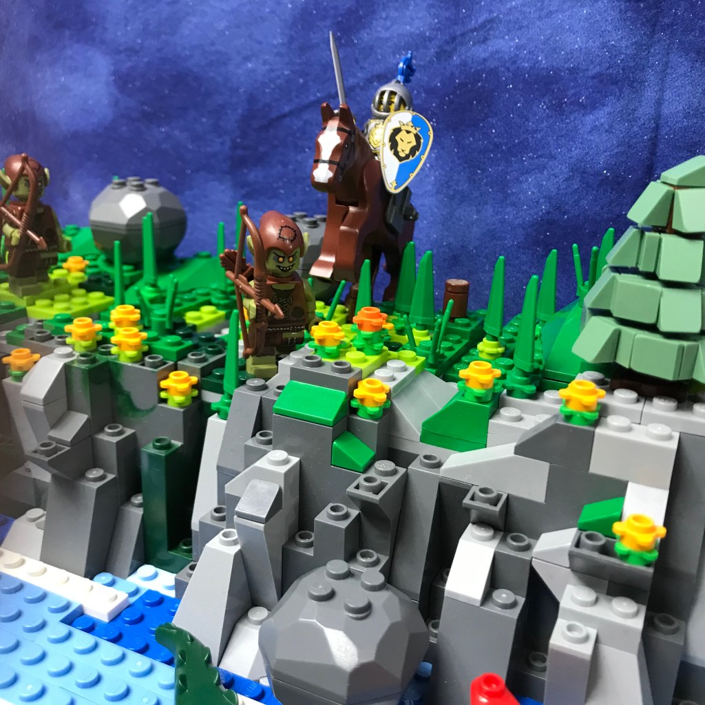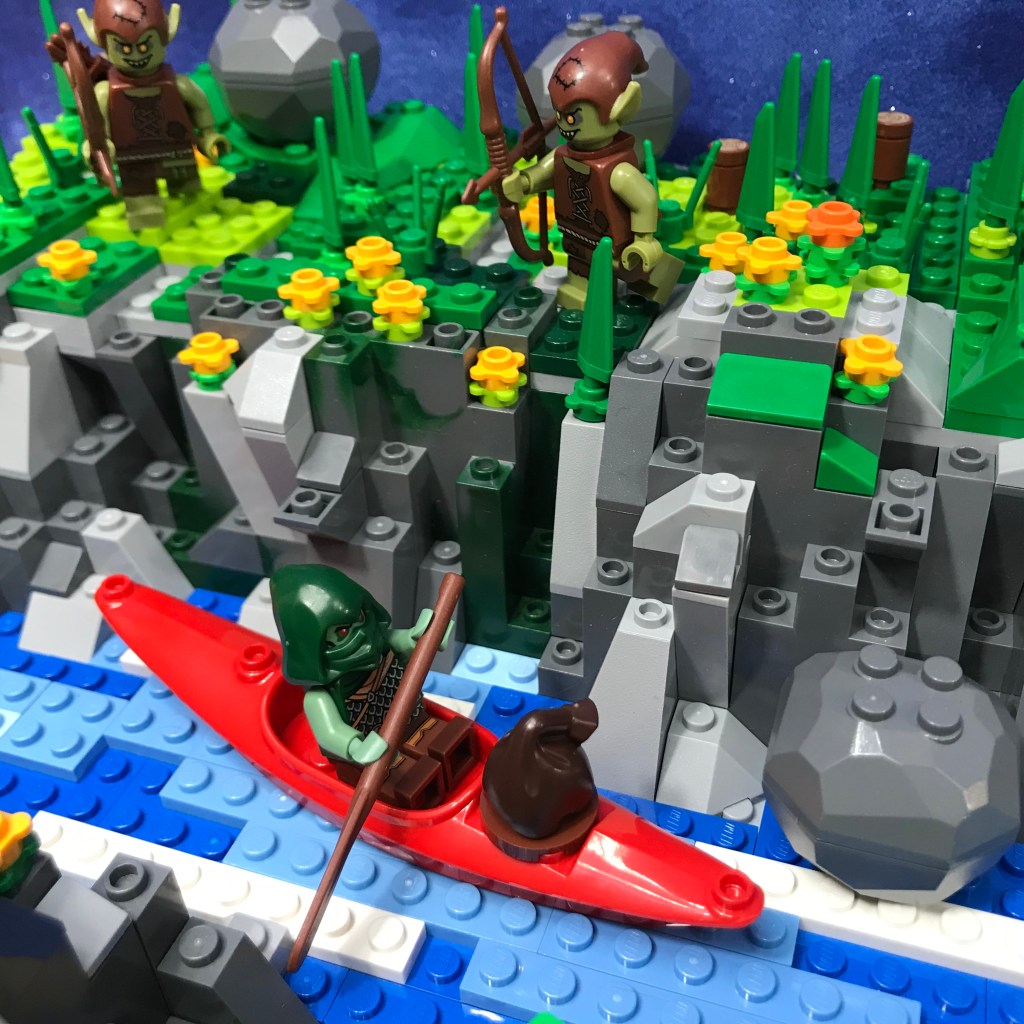 Ingrid surges forward on her mount, driving one of the Goblins off the edge of the cliff! It turns out Goblins can’t swim …