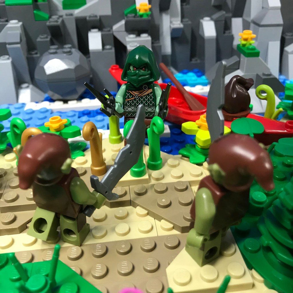 Smilax beaches the canoe and leaps out, drawing his sais! The archers are out of reach, but at least he can engage the Goblins on the beach.