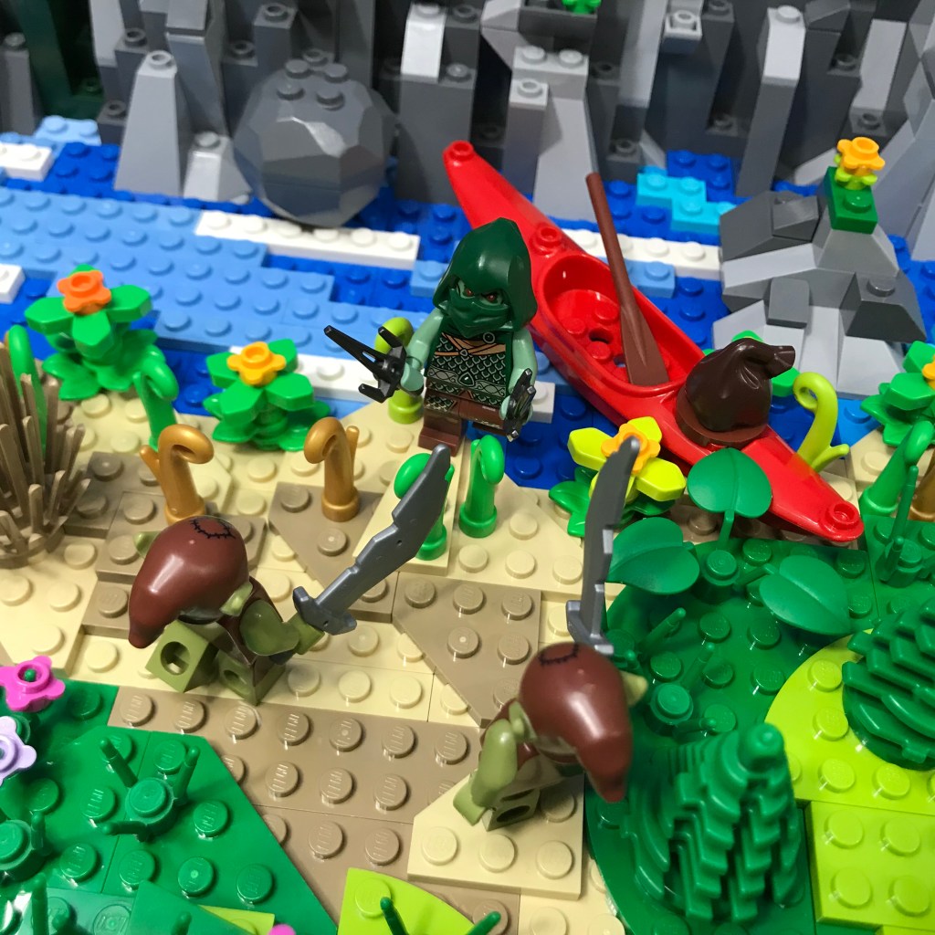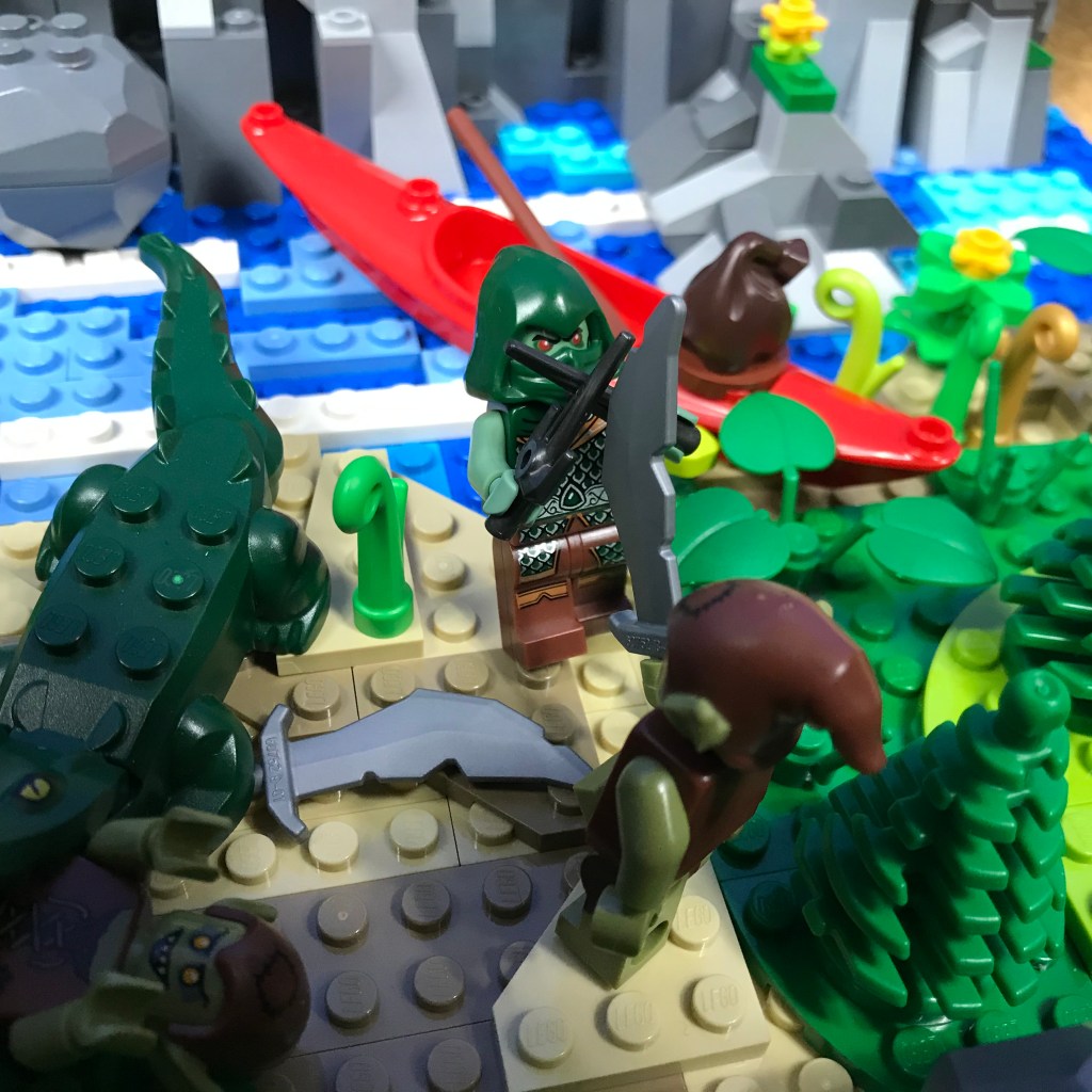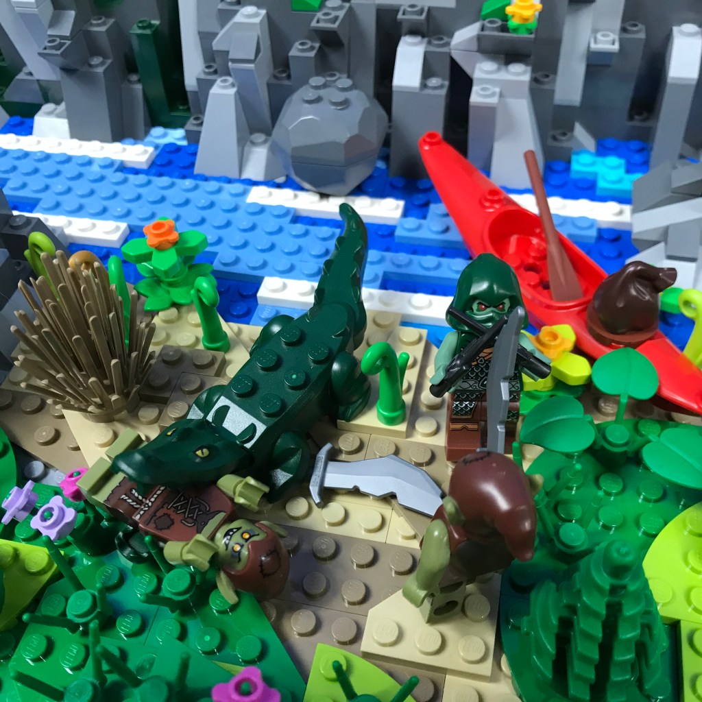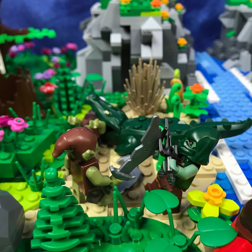 Suddenly an enraged crocodile bursts from the river and charges at one of the Goblins! Smilax and the crocodile engage the Goblins together.