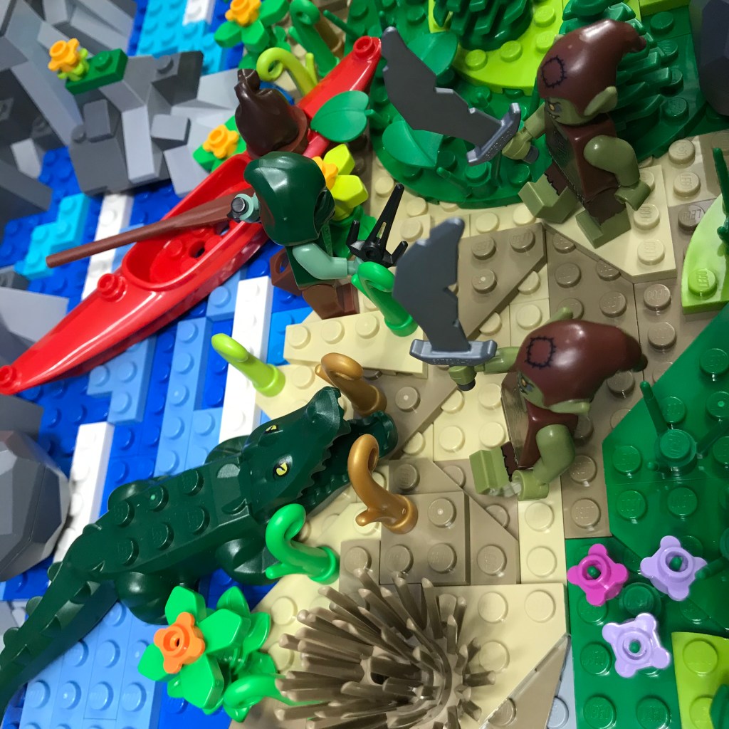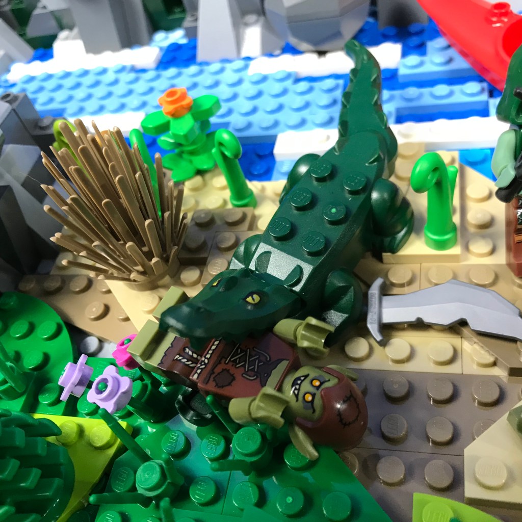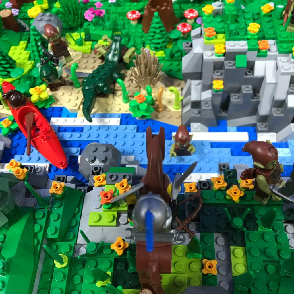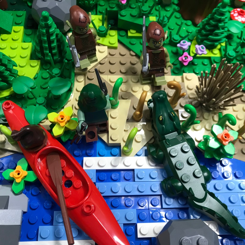 Suddenly an enraged crocodile bursts from the river and charges at one of the Goblins! Smilax and the crocodile engage the Goblins together.