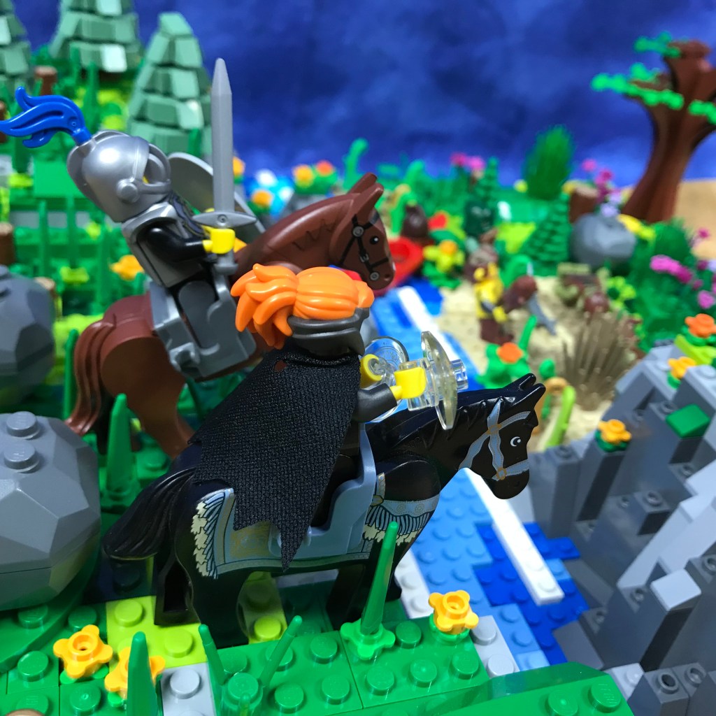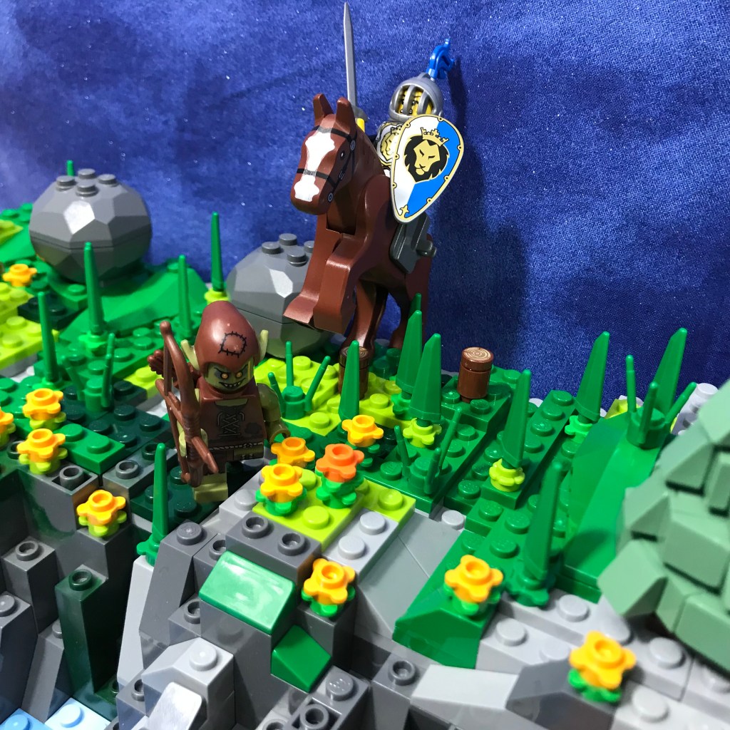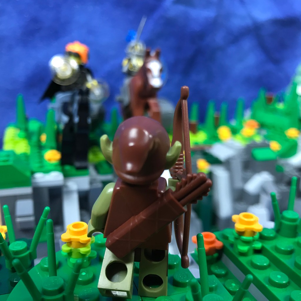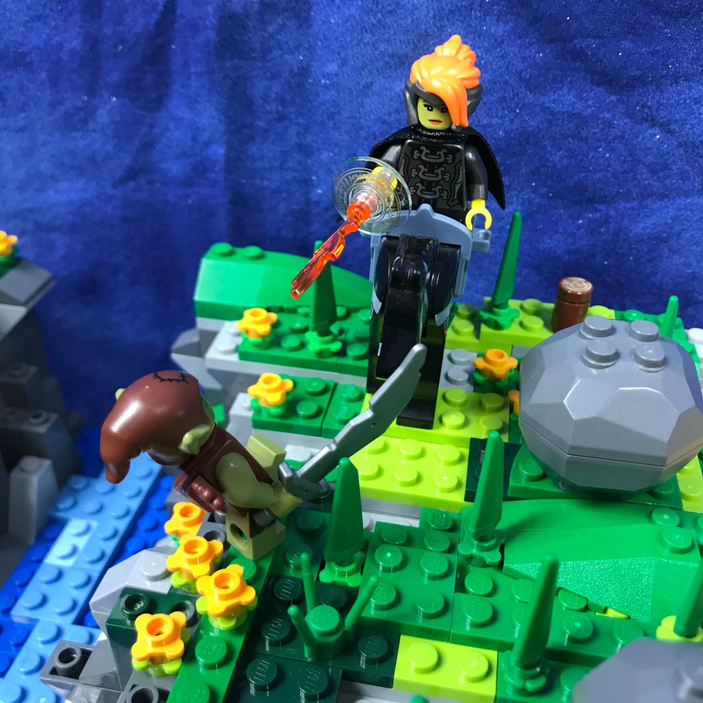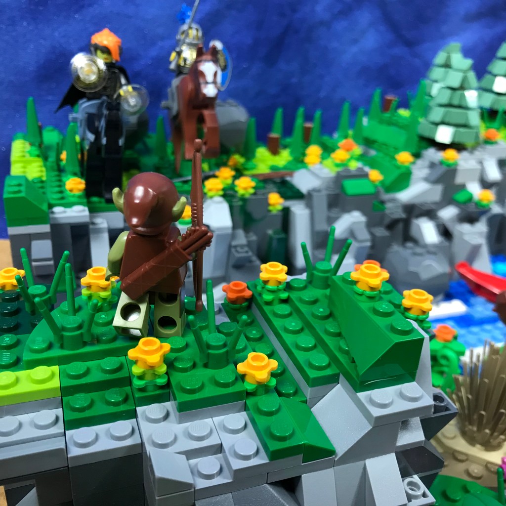 Meanwhile Ingrid Stormhammer emerges on the ridge on her horse, taking the Goblin archers by surprise. Misako the Mononymous is right behind her, flanking the second Goblin archer.