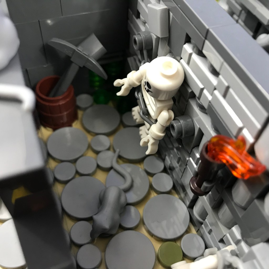 She finds more than just Skeleton Warriors – here are the remains of several unfortunate prisoners, left to rot in their shackles.